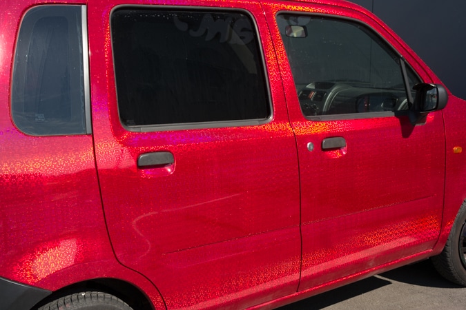 Below: As we were leaving, Ron spotted this car with highly unusual car paint. It is not a photo gone wrong, there was a pattern in the paint, glittering when the sun shone on it. Never seen anything like this before.