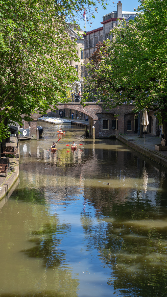 Below: Utrecht is a city with many canals, like Amsterdam. From the long quay with many shops, there are several stairs going down to the canal which runs through the centre of Utrecht.