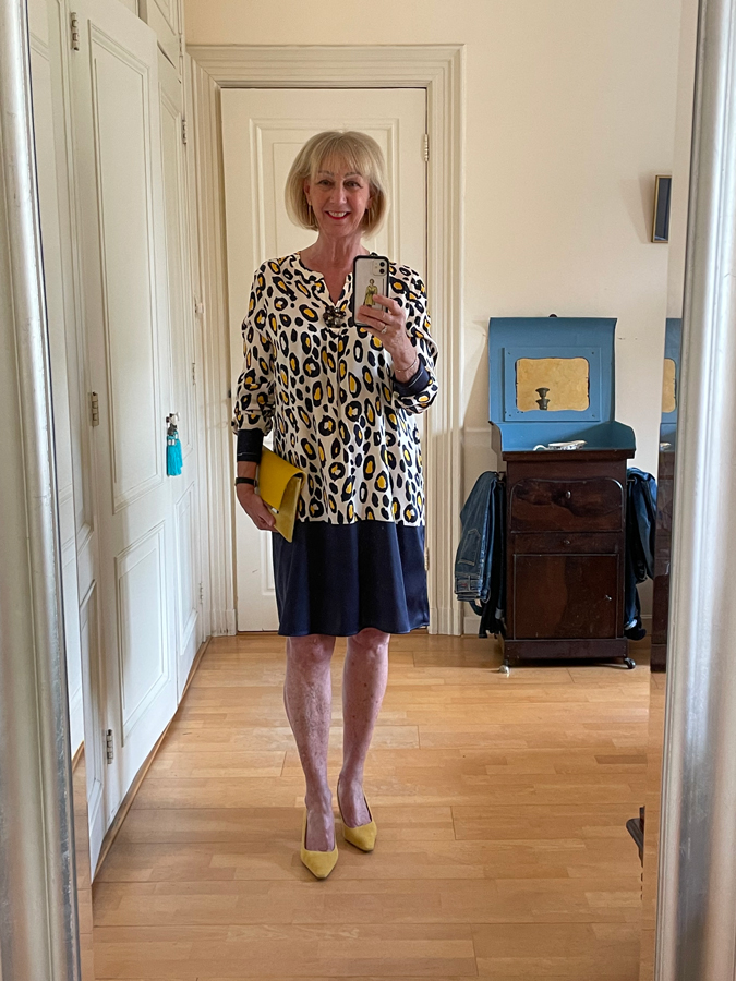 First I am going to show you the ‘elegant dress’ of last week with yellow pumps, as requested by a number of readers.