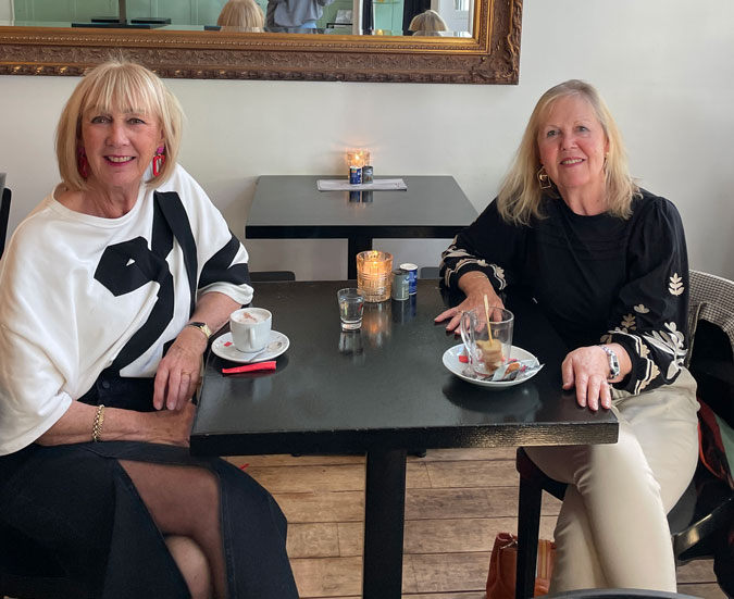 Another happy event was my dinner with Helga (below). As often in spring and autumn when the temperatures are volatile, the outfit choice can be very opposite. Helga was princess-like in champagne colours and tulle and I was wintery in my black leather dress and burgundy boots. Yin and Yang. We couldn’t care less and had a great evening.