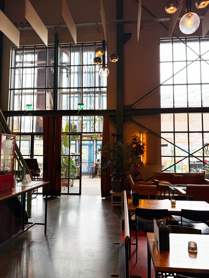 Below: As we were a bit early, we headed to a nearby restaurant (IJver) first. Great building, great cappuccino.