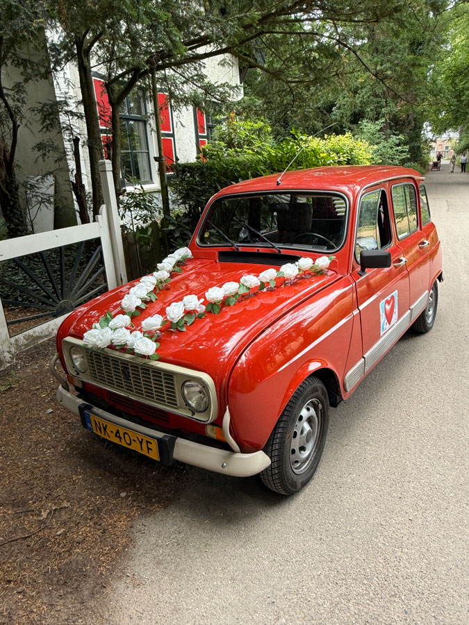 Below: Sunday morning Ron asked me to take some photos and a video of his Renault 4 car, done up for a wedding as he has had several requests for that. He is now busy with a website, bought a chauffeur’s cap, the lot. He’s got a new project.