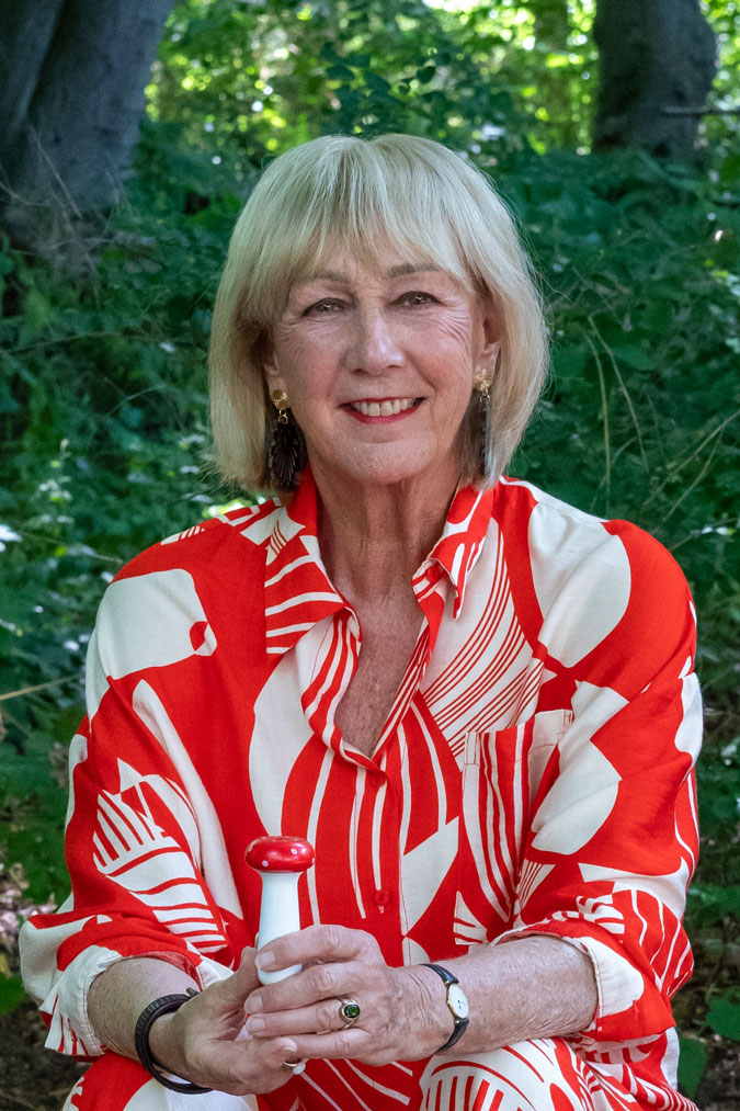Below: I sat down on a tree trunk near the village, next to a gnome with a red and white toadstool. I felt he was a kindred soul.